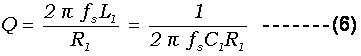 对於石英晶体共振子, 电气品质因子Q是很重要的一个特性. 电气品质因子可以用下列公式(6)表示