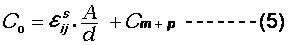 在公式(5)中, A 代表电极的面积; d 代表石英晶片的厚度; ε 是石英晶片的相对应介电值; Cm+p 是其他由材料产生的电容值